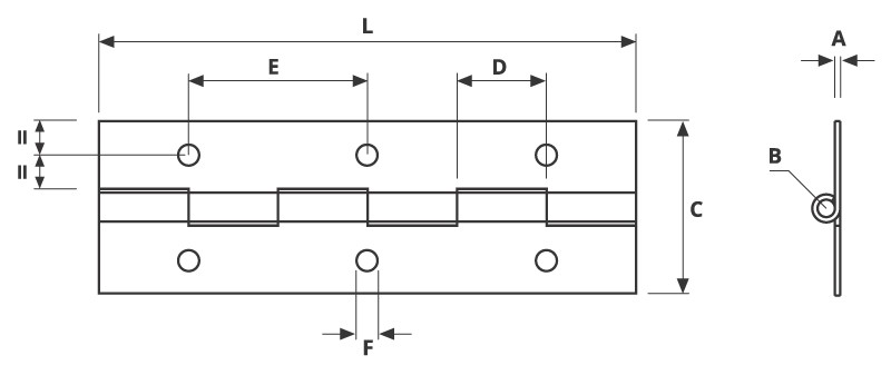 3602 Light Duty Continuous Hinge - Mild Steel - Self Colour - In-line Holes 1829 x 25 x 0.9 x 2.3mm Pin.