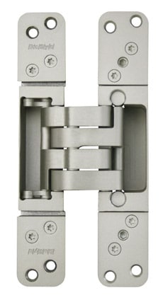 The DX80 incorporates 15mm of extended throw, allowing the door to swing fully open past extra wall cladding or an architrave, or for the hinge to be set further in from the edge of the timber frame, simplifying the machining process. The DX80 is suitable for maximum door weight of 80kg per pair and includes 3-dimensional adjustment and maintenance free bearings.